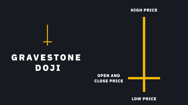 위와 같이 위쪽 심지가 길고 시가와 종가가 저점 근처에 있는 '묘비형 도지'는 하락 반전 캔들입니다. 즉, 매도세가 매수세보다 강해서 가격이 크게 눌렸다는 의미입니다.