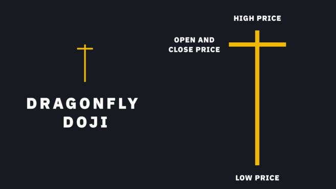'잠자리형 도지'는 아래쪽 꼬리가 길고 시가/종가가 고점 부근에 위치합니다. 즉, 매수세가 매도세보다 강해서 가격을 위로 밀어올렸다는 의밍비니다.
