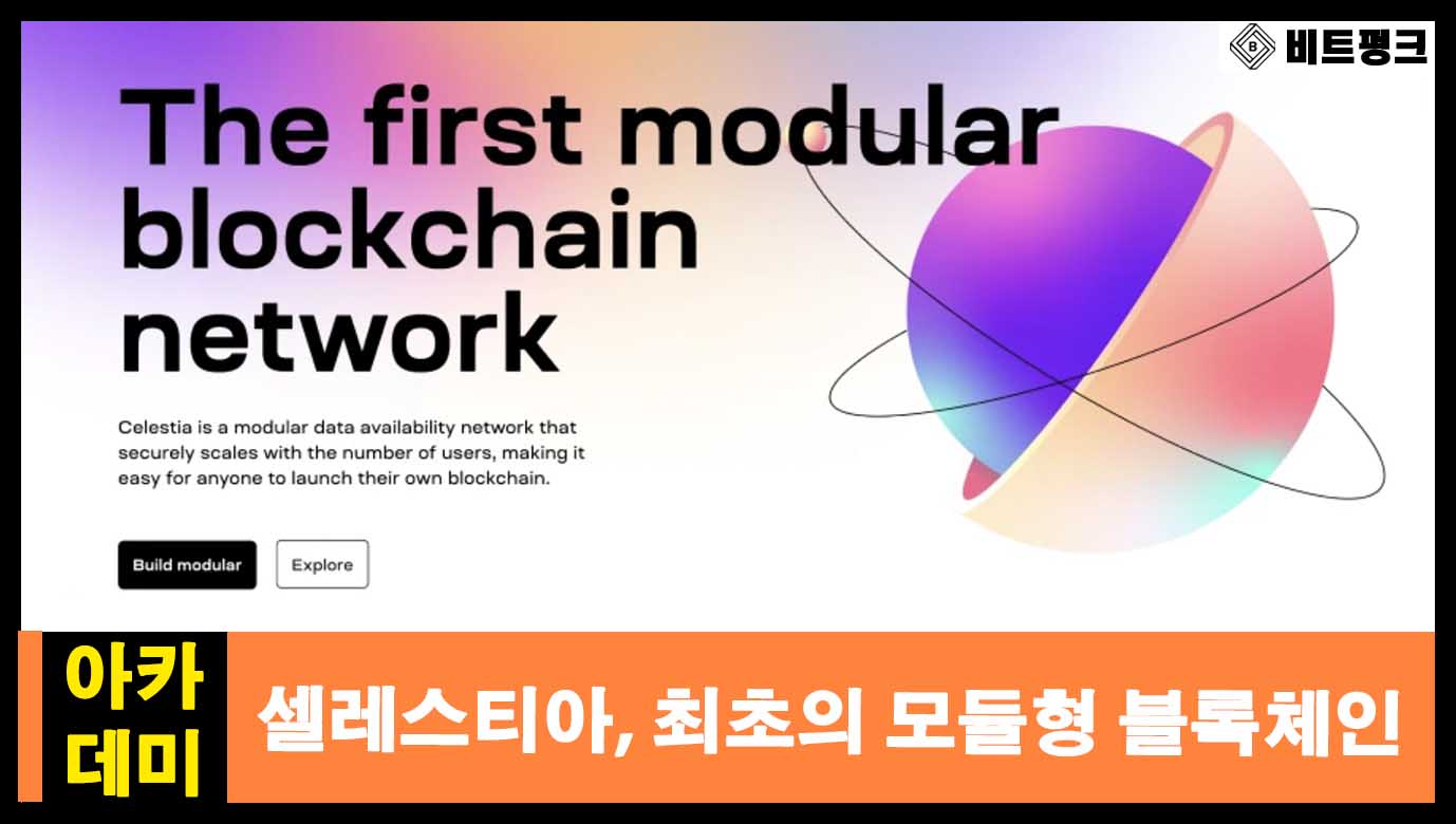 셀레스티아는 모듈형 블록체인을 지원하는 최초의 블록체인입니다. 모듈형 블록체인은 모듈러 체인(Modular Chain)이라고도 하는데요. 마치 큐브의 한 조각처럼, 블록체인의 핵심 기능들을 분리해서 지원하는 것입니다.