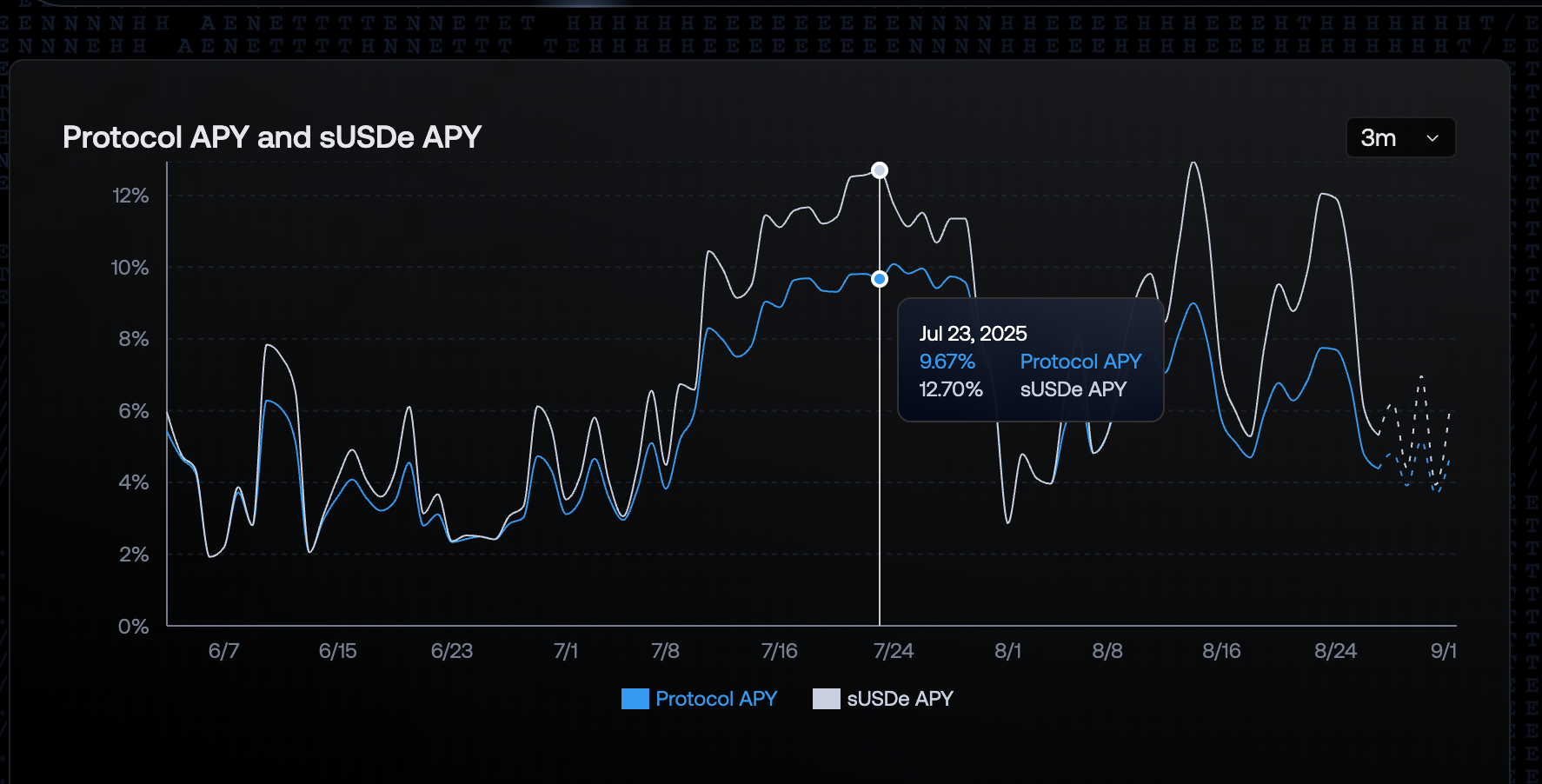 에테나는 미국의 단기 국채와 유사한 자산(예: USTB)을 일부 준비금으로 보유하여, 수익을 확보하고 이를 sUSDe 참여자에게 배분하는 구조를 함께 운용합니다.