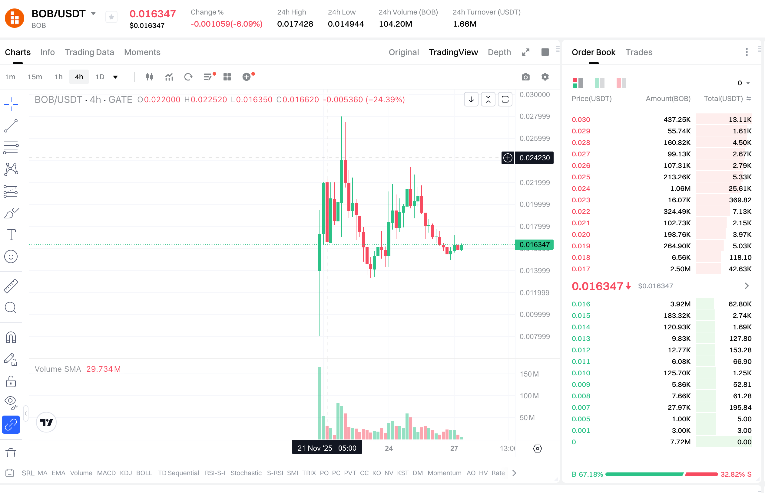 런치패드 종료 후 약 22만개의 BOB 토큰을 받았습니다. 청약한 금액은 5,000 USDT였는데, 이 중에서 바로 팔 수 있는 절반의 물량 BOB 가치는 2,000 USDT 정도였습니다.