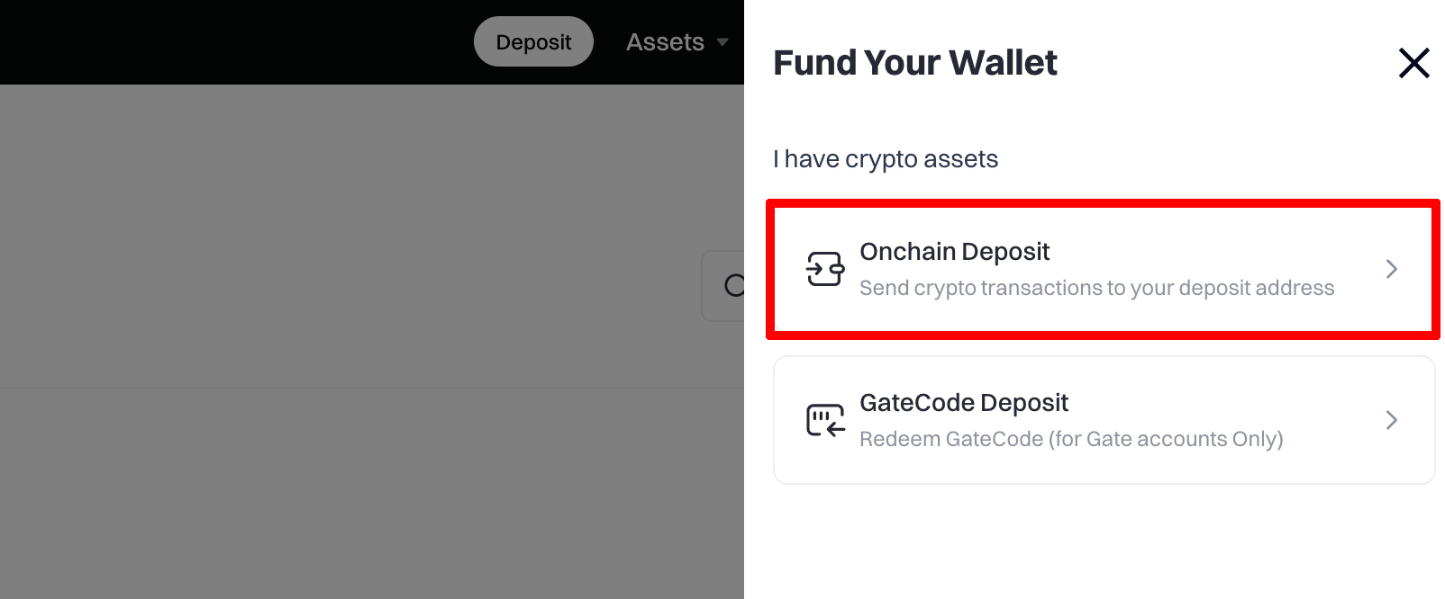 'Onchain Deposit'을 클릭합니다. 이는 빗썸이나 업비트 또는 바이낸스 등 외부 거래소에서 전송하는 경우에 사용할 수 있는 입금 방법이며, 메타마스크와 같은 개인 지갑 전송에도 사용할 수 있는 '온체인 입금' 방법 입니다.