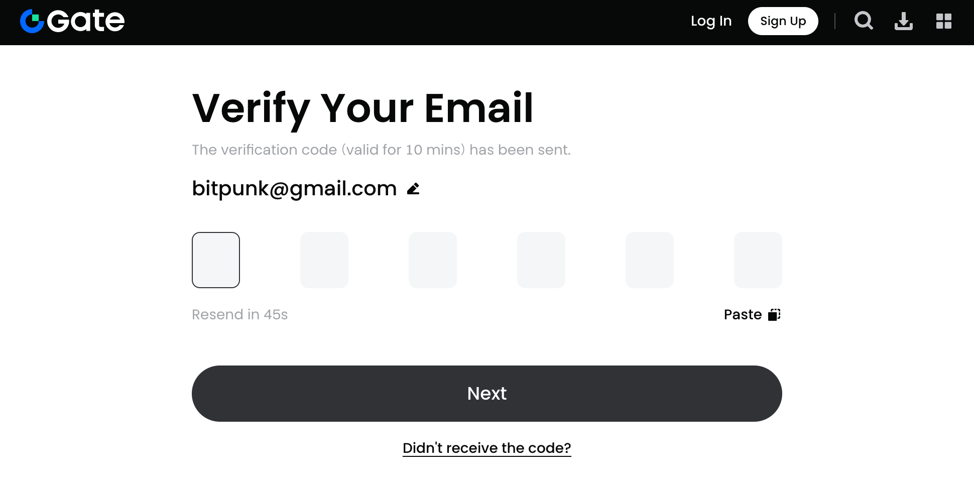 이메일로 6자리 인증 코드가 발송되었습니다. 이메일 수신함을 열어 게이트에서 발송된 코드를 입력해주세요. 여기까지 하시면 게이트 거래소 가입이 완료됩니다.