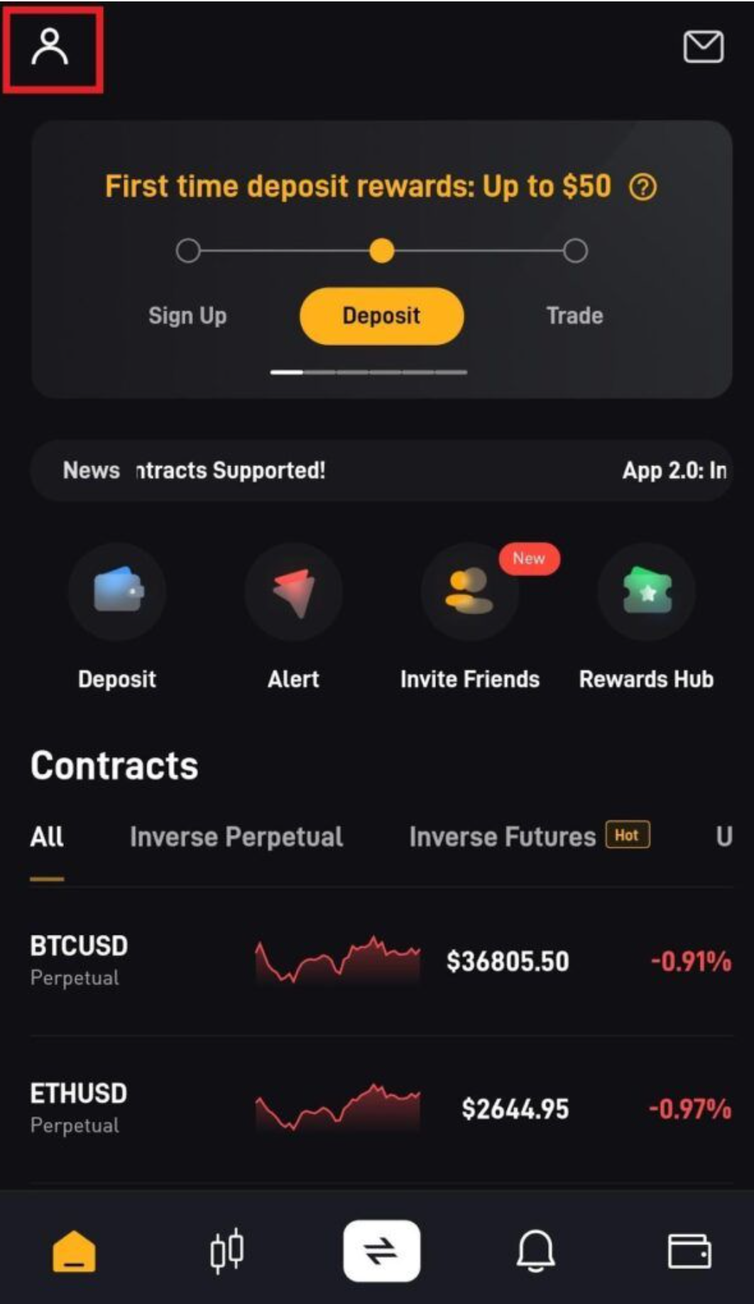 - 바이비트 앱을 켜고 계정으로 이동합니다.