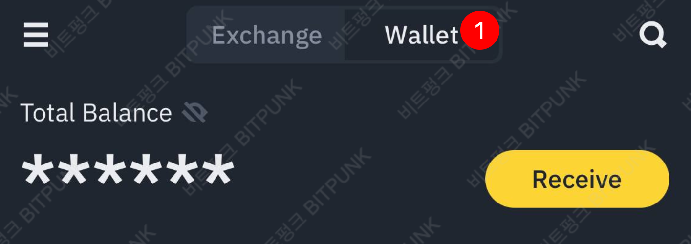 다음으로 [Assets]에 들어가시면, 위쪽에 [Exchange] / [Wallet] 전환 버튼이 있습니다. 여기서 [Wallet]을 클릭해주세요.
