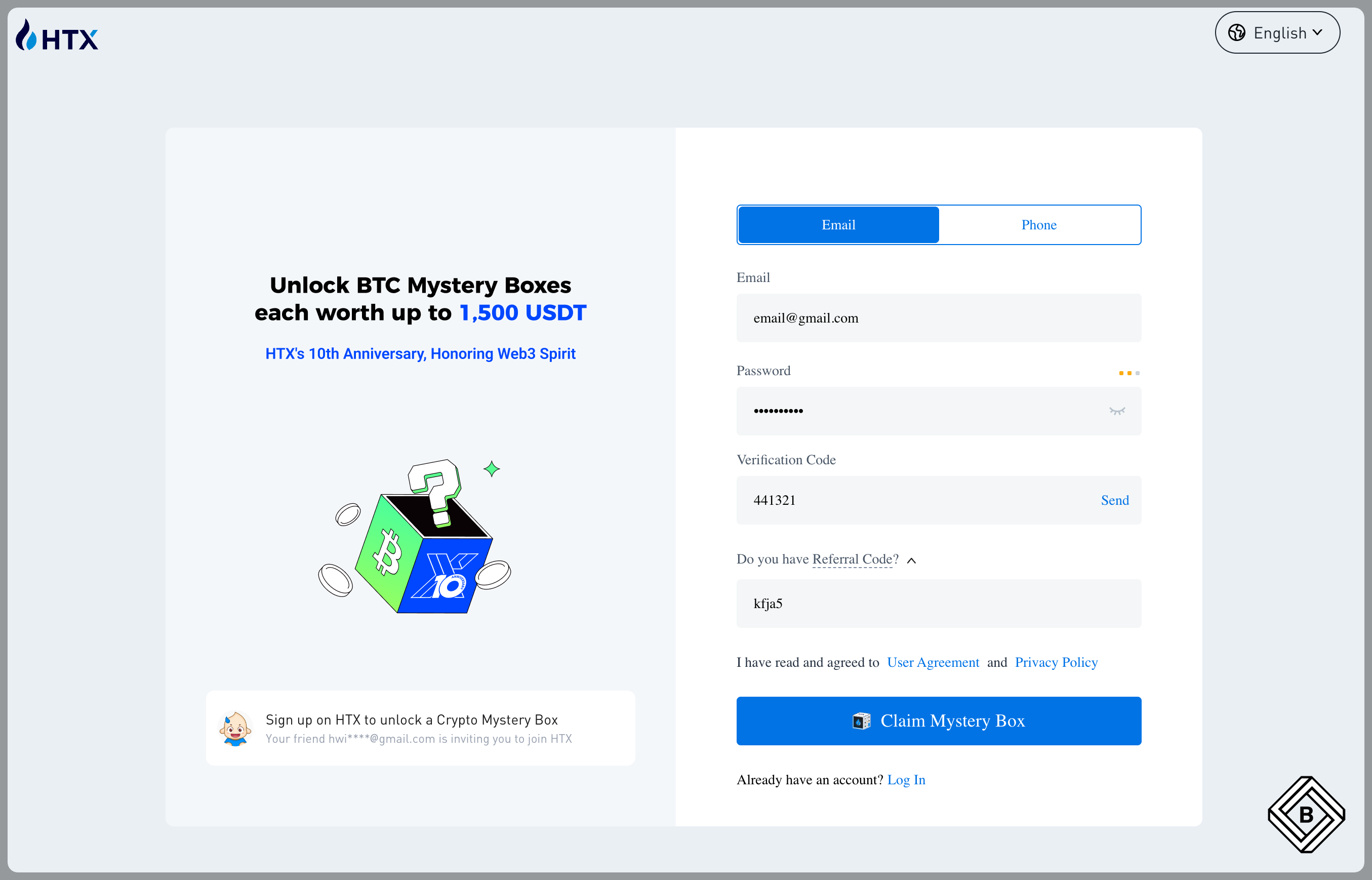 이메일로 전송된 6자리 인증 코드가 전송되었습니다. 이메일에 로그인한 다음, 6자리 코드를 HTX 거래소 가입 페이지에 입력하세요. 코드가 도착하지 않았다면 스팸 메일함을 확인해보세요.