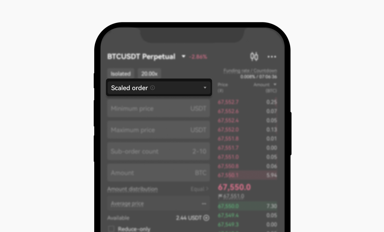분할 주문은 특정 가격 범위 내에서 주문을 여러 개로 나누어 제출하는 것입니다. OKX 거래소에서는 현물 거래에는 사용이 불가능 하며, 선물 거래에서만 사용이 가능한데요.