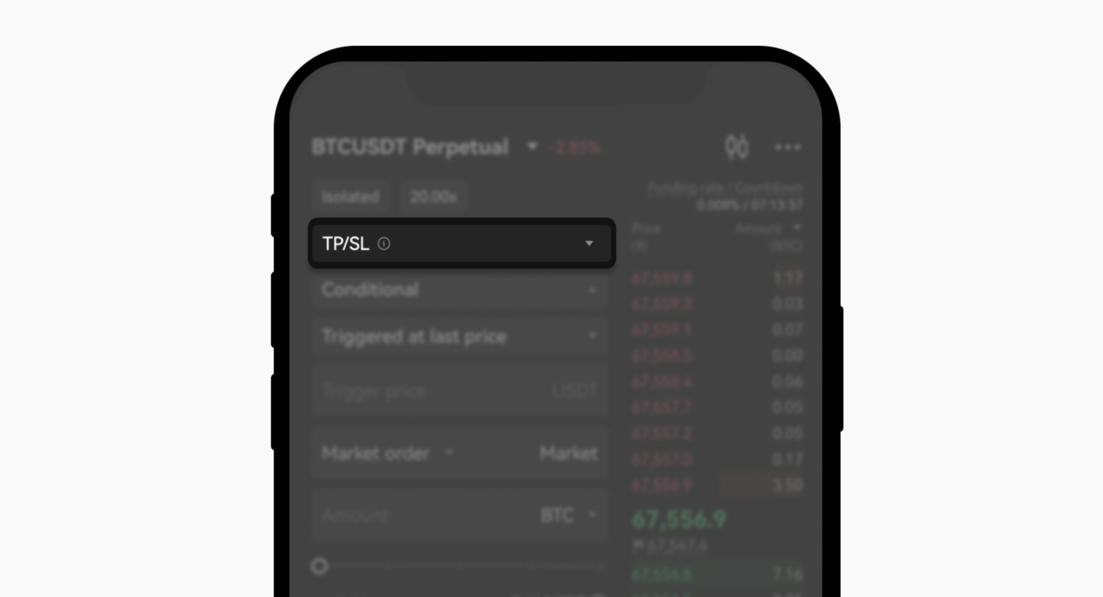 이익 실현 및 스탑 로스 주문을 사용하려면 'TP/SL'을 클릭한 다음, 목표 수익 가격(TP) 및 손절 가격(SL)을 입력할 수 있습니다. 이렇게 하면 차트를 계속 보고 있지 않아도 원하는 가격에 수익을 실현하거나 손실을 제한할 수 있습니다.