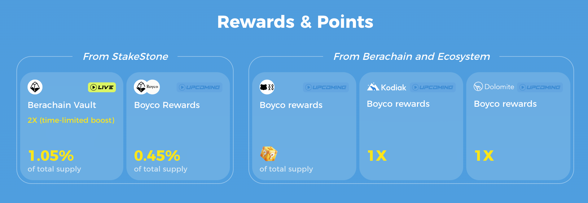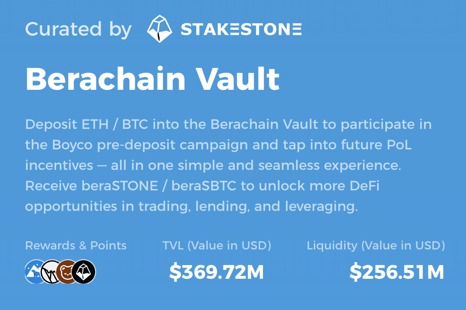 스테이크스톤은 최근 베라체인(Berachain)과의 협력을 통해 베라 볼트(Bera Vault) 캠페인을 출시했습니다.