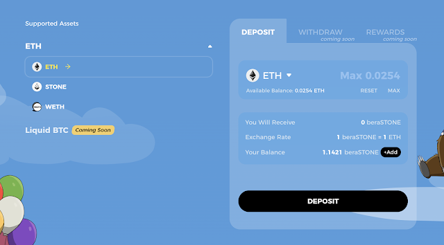 - 예를 들어, ETH를 예치하면 1:1 비율로 $beraSTONE을 획득할 수 있습니다.