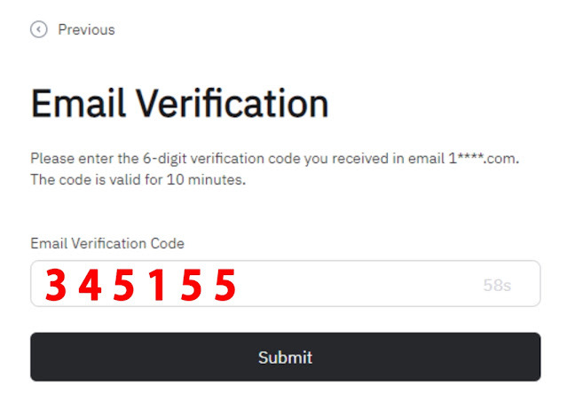 다음으로 이메일 인증을 해야 합니다. 이메일에 로그인한 다음, 전송된 6자리 코드를 입력하세요. 'Submit'을 누르면 해시키 계정이 생성됩니다.