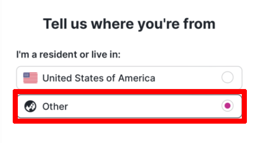 미국 거주자인지를 묻는 화면이 나옵니다. 미국에 거주하지 않으신다면 'Other'를 눌러줍니다.