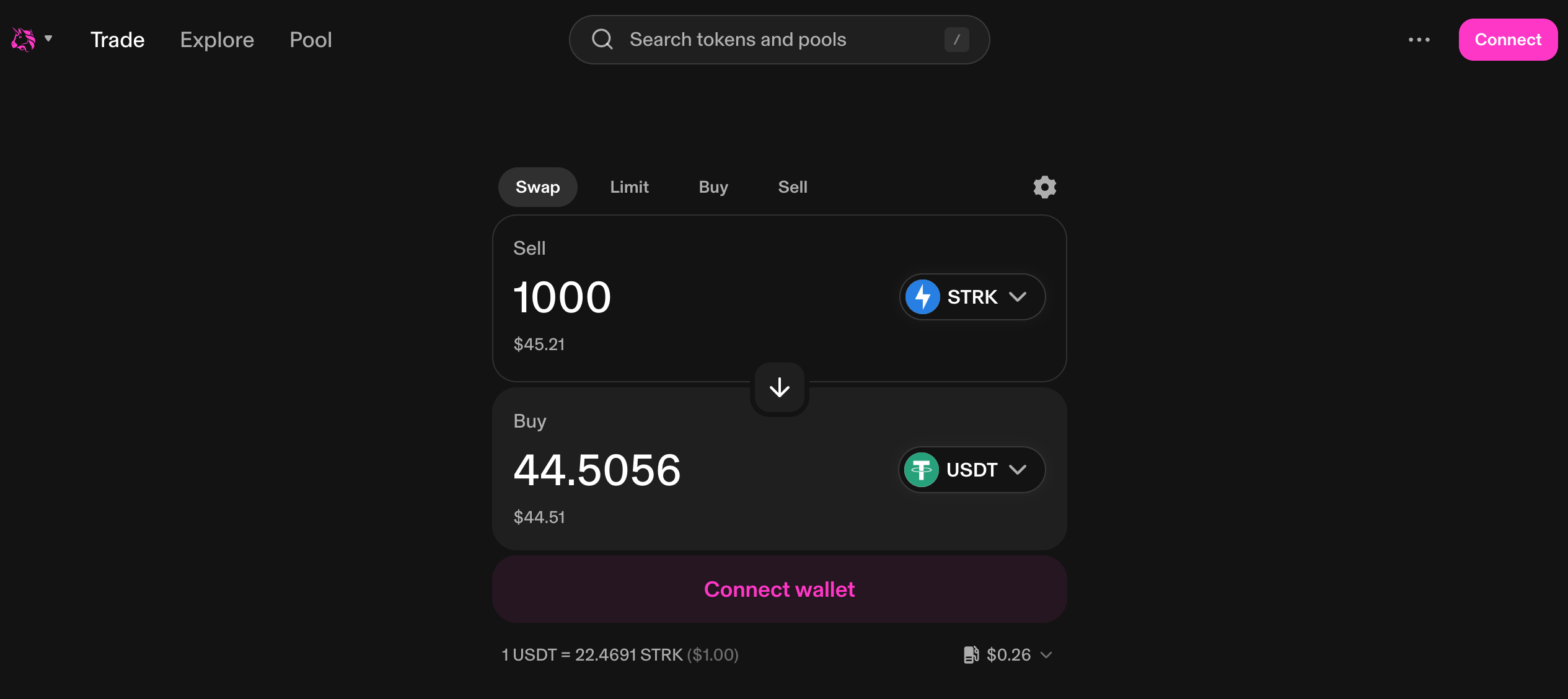 다음으로 스왑을 원하는 자산을 선택하고 매도를 진행할 수 있습니다. 아래는 유니스왑에서 스트라이크 컨트랙트 주소를 붙여 넣고, 이를 USDT로 스왑하는 예시입니다.