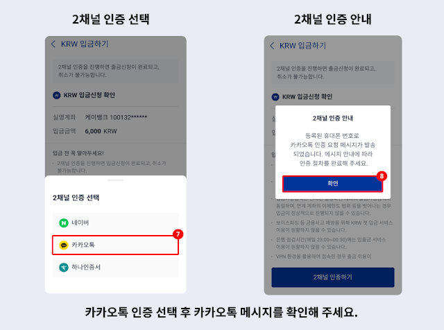 - 카카오톡 인증을 이용하는 경우, 카카오톡 지갑의 알림톡이 활성화되어 있어야 합니다. 인증 메시지를 받지 못하면 진행이 안 되니 설정을 꼭 확인하세요.