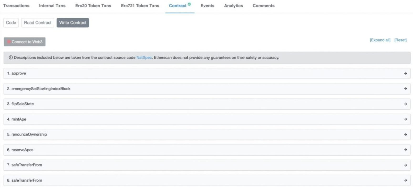 - “Write Contract” 탭: 직접 트랜잭션 생성 가능 (지갑 연결 필요)
